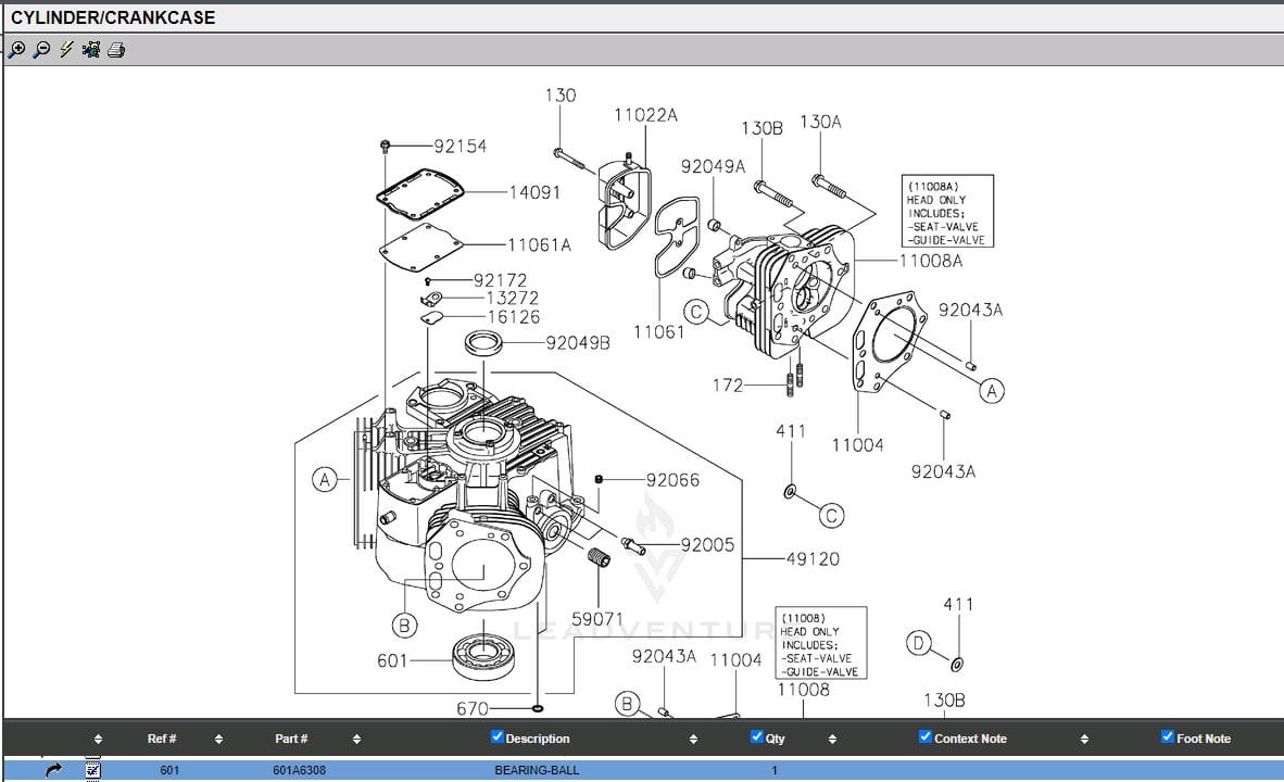 Be the first to review “Genuine Kawasaki 601A6308 Crankshaft Bearing FX751V FX801V KX850V FX921V FXT00V”