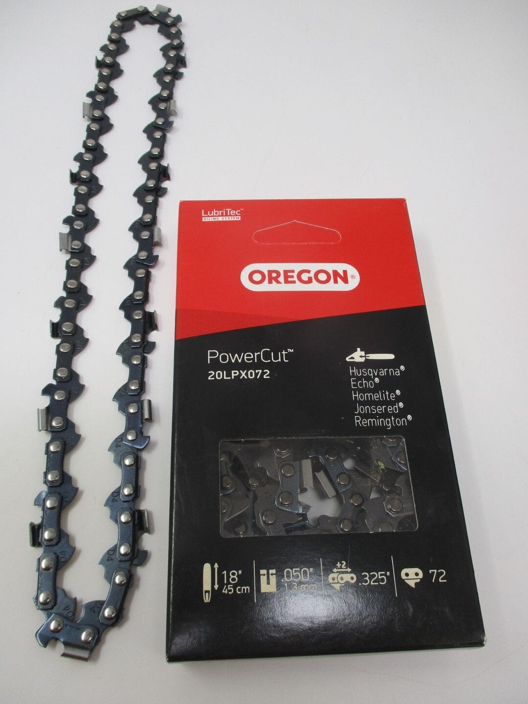 The Oregon 20LPX072G PowerCut Saw Chain is a .050″ gauge chain for experienced loggers and tree care workers who use .325″ pitch saws. This saw chain features low-vibration, full chisel cutters that cut through timber quickly and precisely. The depth gauges are designed to provide maximum chain performance and a smooth cutting experience on higher output, .325″ pitch chainsaws. The 20LPX072G saw chain fits .325″ pitch saws that are equipped 18″ guide bars from several brands such as Husqvarna, Jonsered, Echo, Homelite, and Poulan.