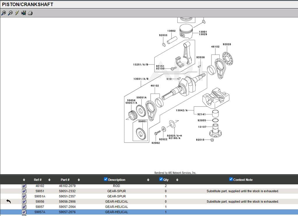 Genuine Kawasaki 59057-2076 Crankshaft Helical Gear