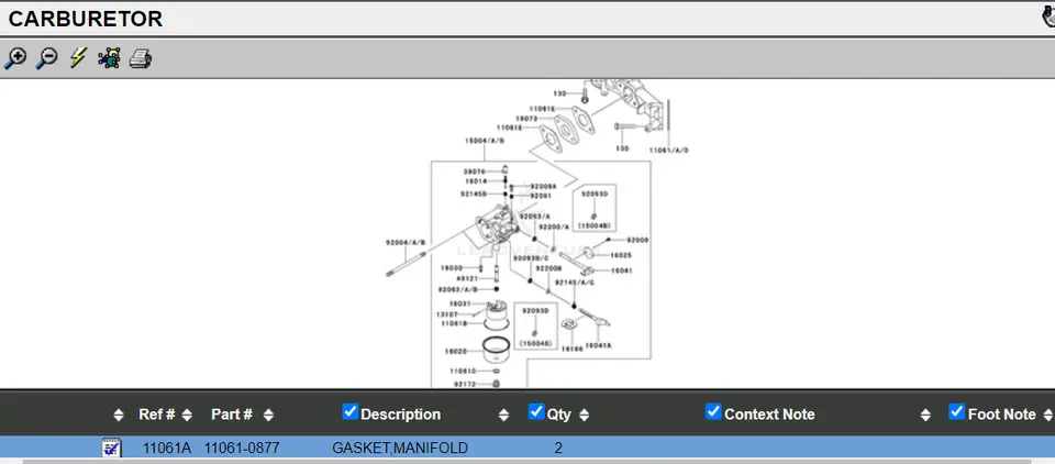 Genuine Kawasaki 11061-0877 Carburetor Manifold Gasket