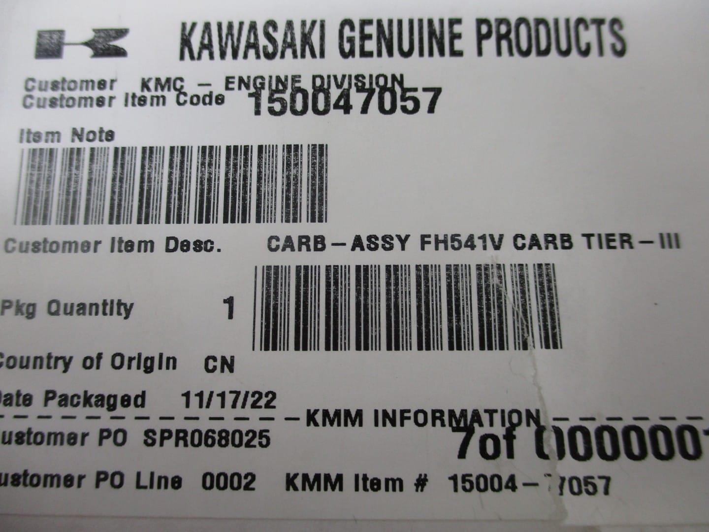 Genuine Kawasaki Carburetor 15004-7057, 15003-7107 FH541V