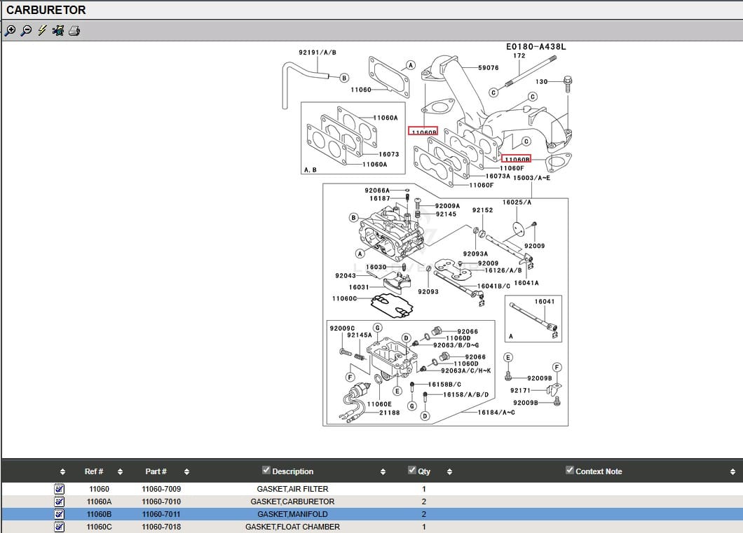 2 Genuine Kawasaki 11060-7011 Manifold Gasket