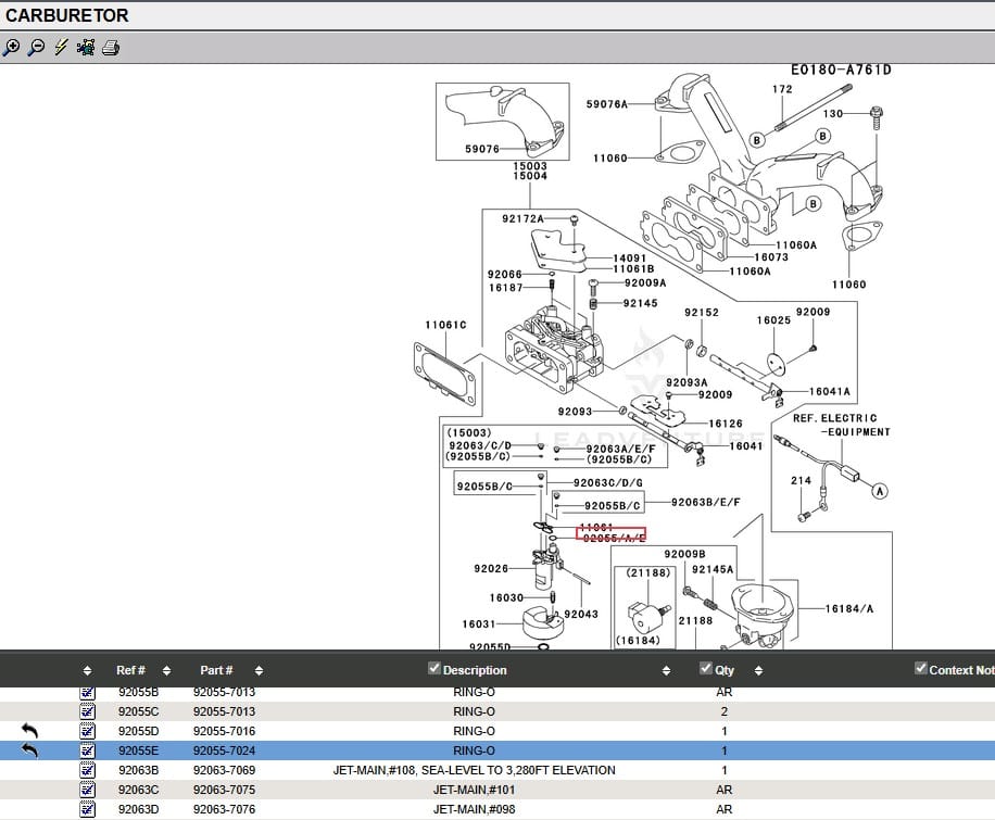 Genuine Kawasaki 92055-7024, 92055-7012 Carburetor O-Ring