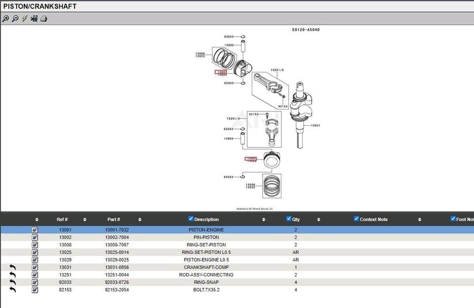 Genuine Kawasaki 13025-0014 Piston Rings OS Oversize 0.5