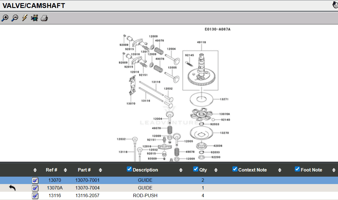 2 Genuine Kawasaki 13116-2057 & 13070-7001 Push Rods & Guide