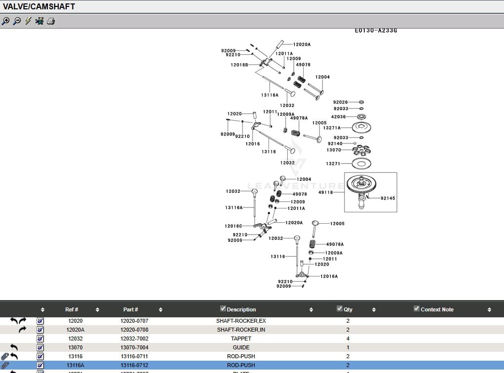 Genuine Kawasaki 13116-0712 Push Rod